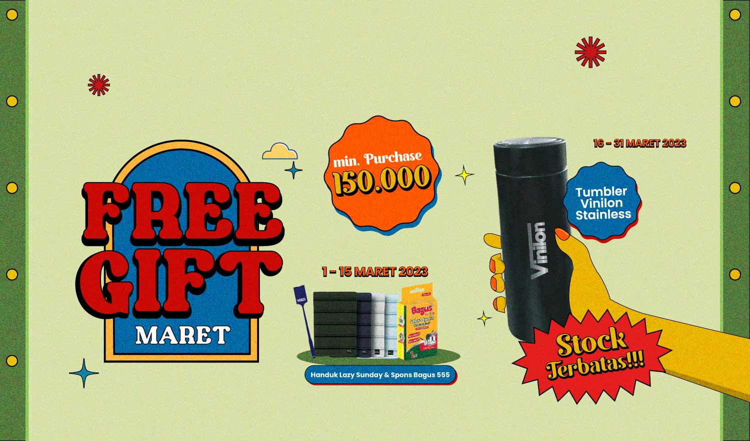 Vinilon Group Free Gift Handuk Lazy Sunday & Sponge Bagus